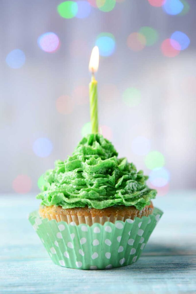 cupcake with lighted candle for employee birthdays