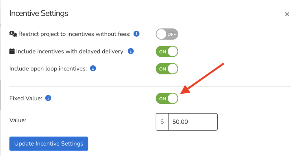 Before you create your automated event you will need to make sure that your incentive is set to a fixed value in your incentive settings in the incentives tab.