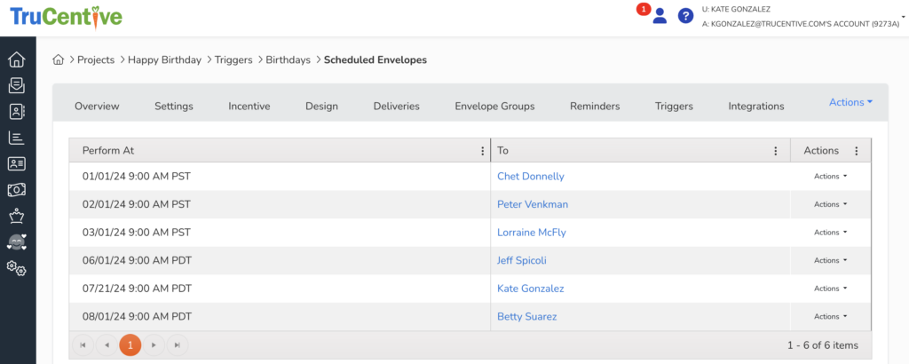 • Edit – will return you to the automated events settings screen where you can adjust the name, custom field, time or turn the trigger on and off