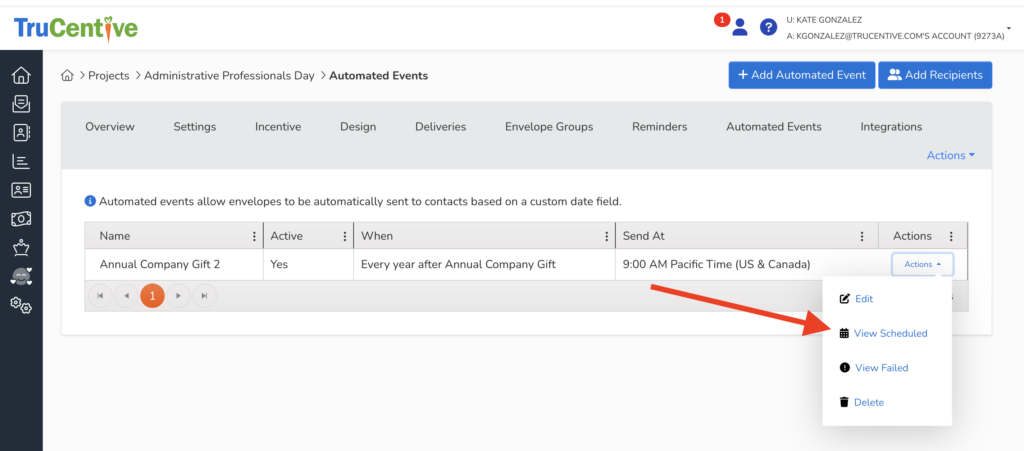 You will know that your automated event is set to go by clicking on the view scheduled. This screen will confirm all of the recipients and pertinent information.