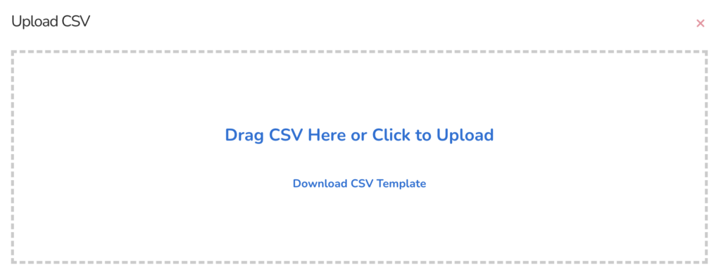 Click on the blue CSV Bulk Upload button in the right hand corner of the screen and download the fillable template.